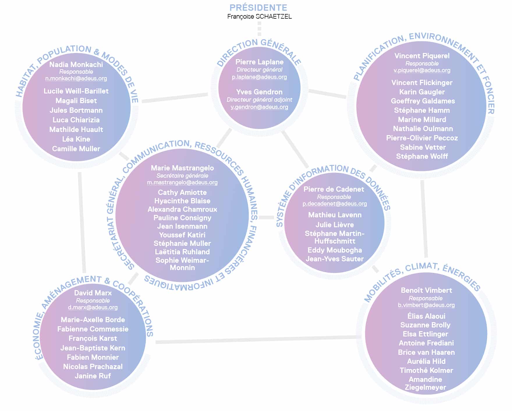 La force d’une agence d’urbanisme repose sur le caractère pluridisciplinaire de son équipe et donc sur la diversité de ses compétences. L’Adeus emploie des architectes-urbanistes mais aussi des géographes, des économistes, des sociologues, des démographes, des ingénieurs, des informaticiens… Et c’est en croisant leurs idées que naissent les meilleures réflexions !