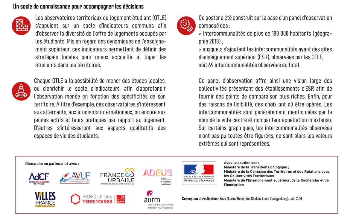 Outils d’aide à la décision, les OTLE ont été créés pour aider les collectivités et les acteurs du logement étudiant et de l’enseignement supérieur. Ils permettent d’identifier les spécificités territoriales, d’éclairer localement les politiques publiques de l’habitat et d’intégrer le logement étudiant aux futurs PLH ou PLUi.